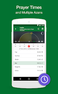 - Accurate prayer times based on your current location with multiple settings available (angles)